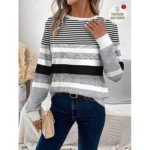 Per donna Maglietta A righe Moda Moderno Manica Lunga Girocollo Top Regolari Quotidiano Blu Grigio Estate Primavera