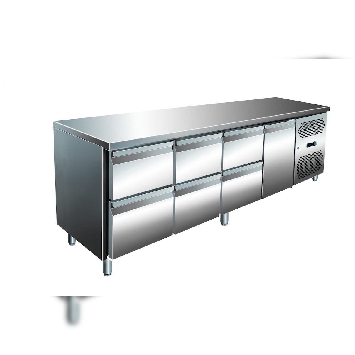 Wimar Gastro Edelstahl Kühltisch Kühltheke 1 Tür / 6 Schubladen 246 L -2/+8°C