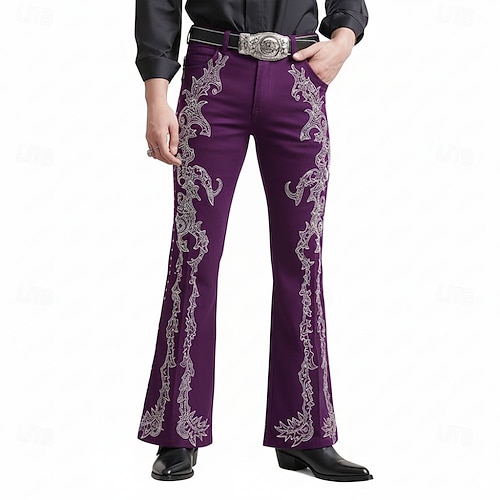 Per uomo Stampa Floreale Fiori Pantaloni da discoteca Pantaloni a zampa d'elefante anni '60 e '70 Misura del girovita medio Western Vintage Retrò All'aperto Vacanza Casuale Tasche Laterali Pantaloni