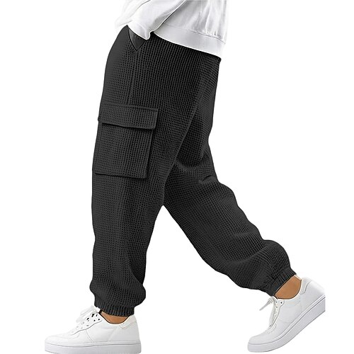 Per uomo Nido d'ape Pantaloni Cargo Pantaloni da Tuta Cargo Joggers Pantaloni casual Coulisse Polsino elastico Tinta unica Comodità Lunghezza intera All'aperto Casuale Quotidiano Vacanza Moda Nero