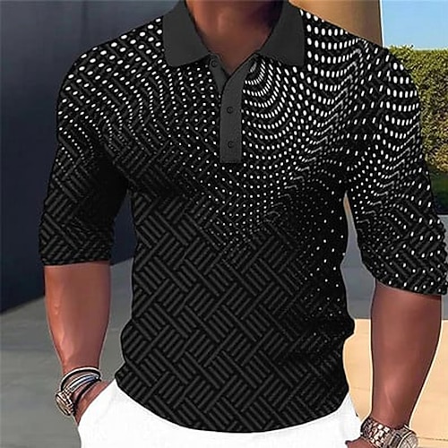 Per uomo Astratto Geometrico Polo Manica Lunga Magliette polo Bavero Casual All'aperto Streetwear Athleisure Abbigliamento quotidiano Stampa 3D Bottoni Primavera Autunno Inverno Nero Bianco Verde