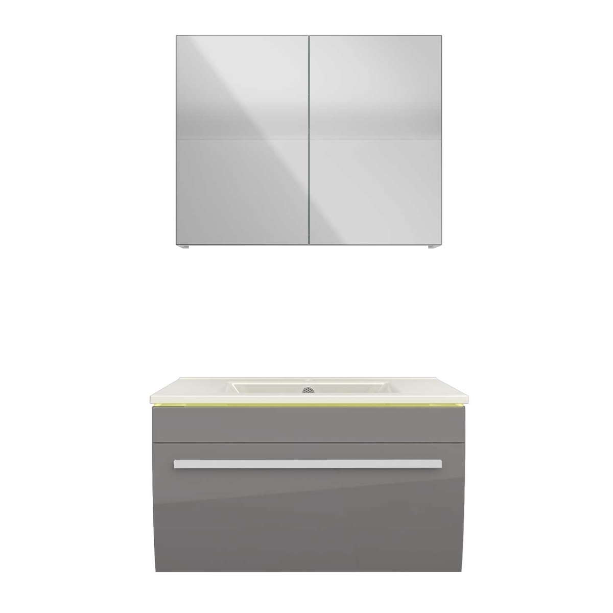 AcquaVapore Badmöbel Set Gently 3 V1 Weiß/Grau MDF Waschtisch 70cm JA mit 1x 5W LED / 1x Energiebox