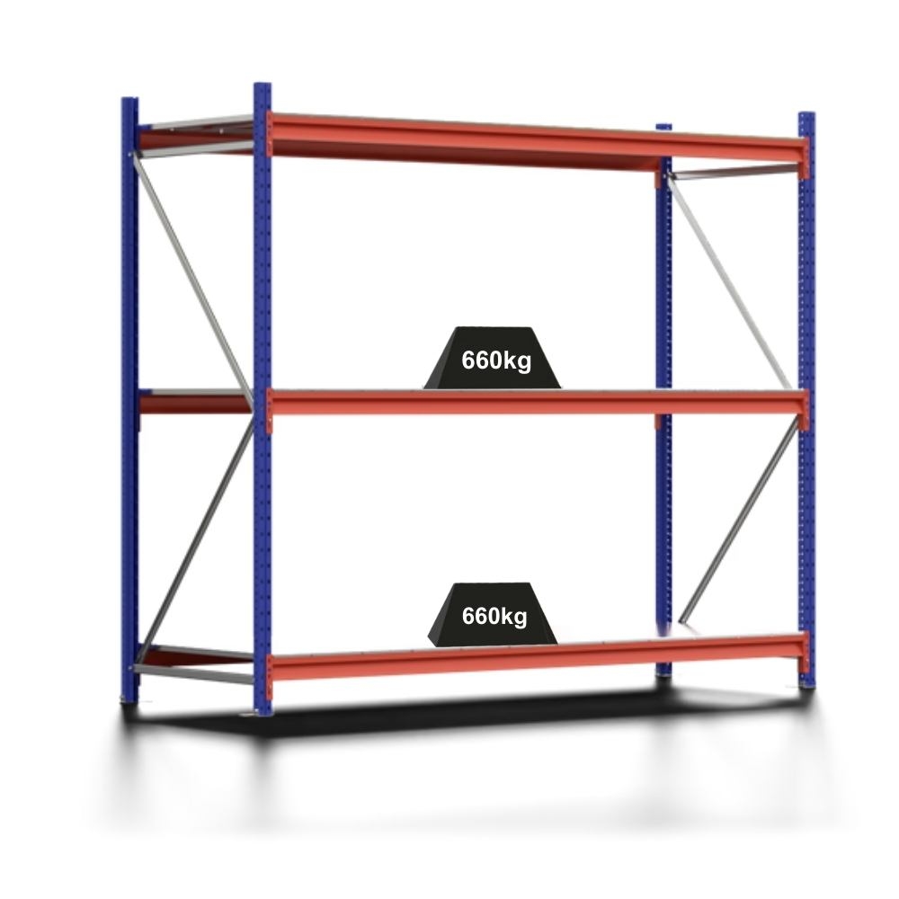 PROREGAL Weitspannregal MOOSE Stecksystem Omega-Profil, Grundregal, HxBxT 200x222x80cm, 3 Ebenen, Spanplatten-Fachboden, Fachlast 660kg, Blau/Orange