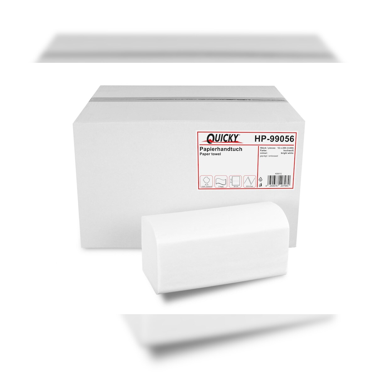 Quicky 3000 Blatt Papierhandtücher 2-lagig, Zellstoff, ZZ/V-Falz, 24 x 21 cm, hochweiß | Falthandtuch, Handtuchpapier