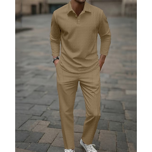 Per uomo Completi T-shirt Completi camicia e pantaloni Outfit 2 pezzi Manica Lunga Bavero Primavera Autunno Semplice Moda Casual Jacquard 2 Pezzi Vacanza Abbigliamento quotidiano Uscire Nero Bianco