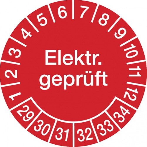 König Werbeanlagen Dreifke® Prüfplakette Elektr. geprüft ab 29 rot/weiß - 20 mm Folie selbstklebend