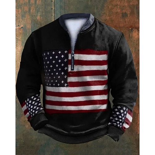 Per uomo Bandiera Americana Stampa Felpa Felpa con zip corta Felpe Manica Lunga Felpa Mezza zip Moderno Contemporaneo Vintage Retrò Stampa Ferie Uscire Festival Stampato Autunno Inverno
