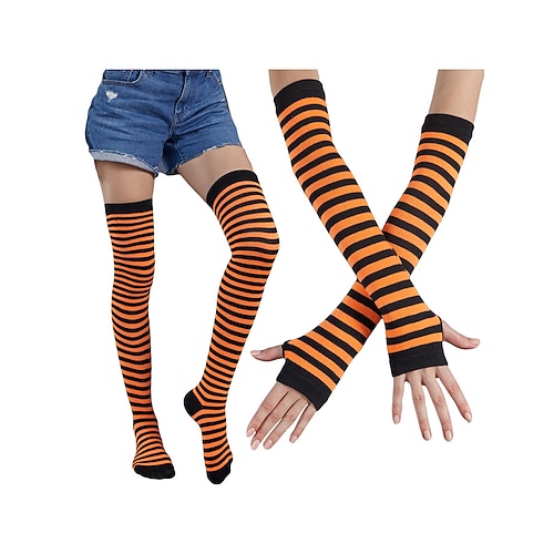 Set di calzettoni e guanti a strisce di Mardi Gras per donna colori multipli design divertente e colorato perfetto per carnevale e balli in maschera