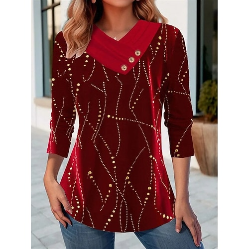 Per donna maglietta Libellula Di tendenza Moderno Informale Manica corta A V Top regolari Giornaliero Fine settimana Stampa Rosso Blu Grigio Estate
