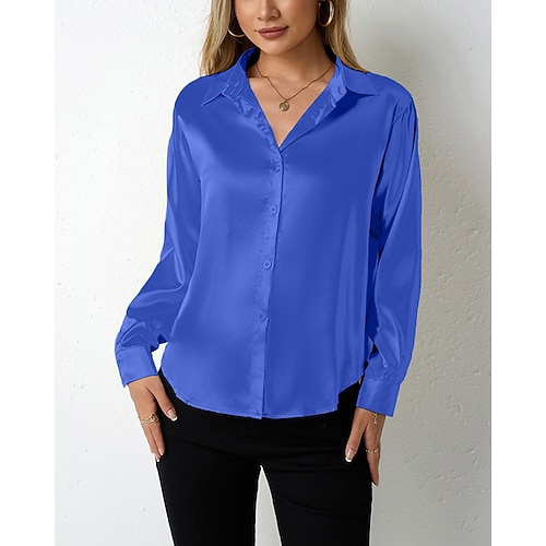 Per donna Camicia Elegant Elegante Raso/Satin Semplice Elegante Casual Manica Lunga Colletto a Camicia Top Regolari Quotidiano Uscire Bottoni Nero Rosso Blu marino Blu Reale Beige Primavera Autunno