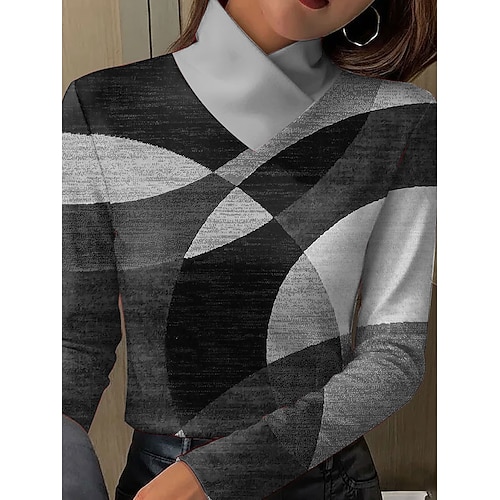Per donna Maglietta Grafico Geometrico Astratto Elegante Vintage Moderno Manica Lunga Dolcevita Top Regolari Quotidiano Stampato Blu Arancione Verde Grigio Primavera Autunno Inverno