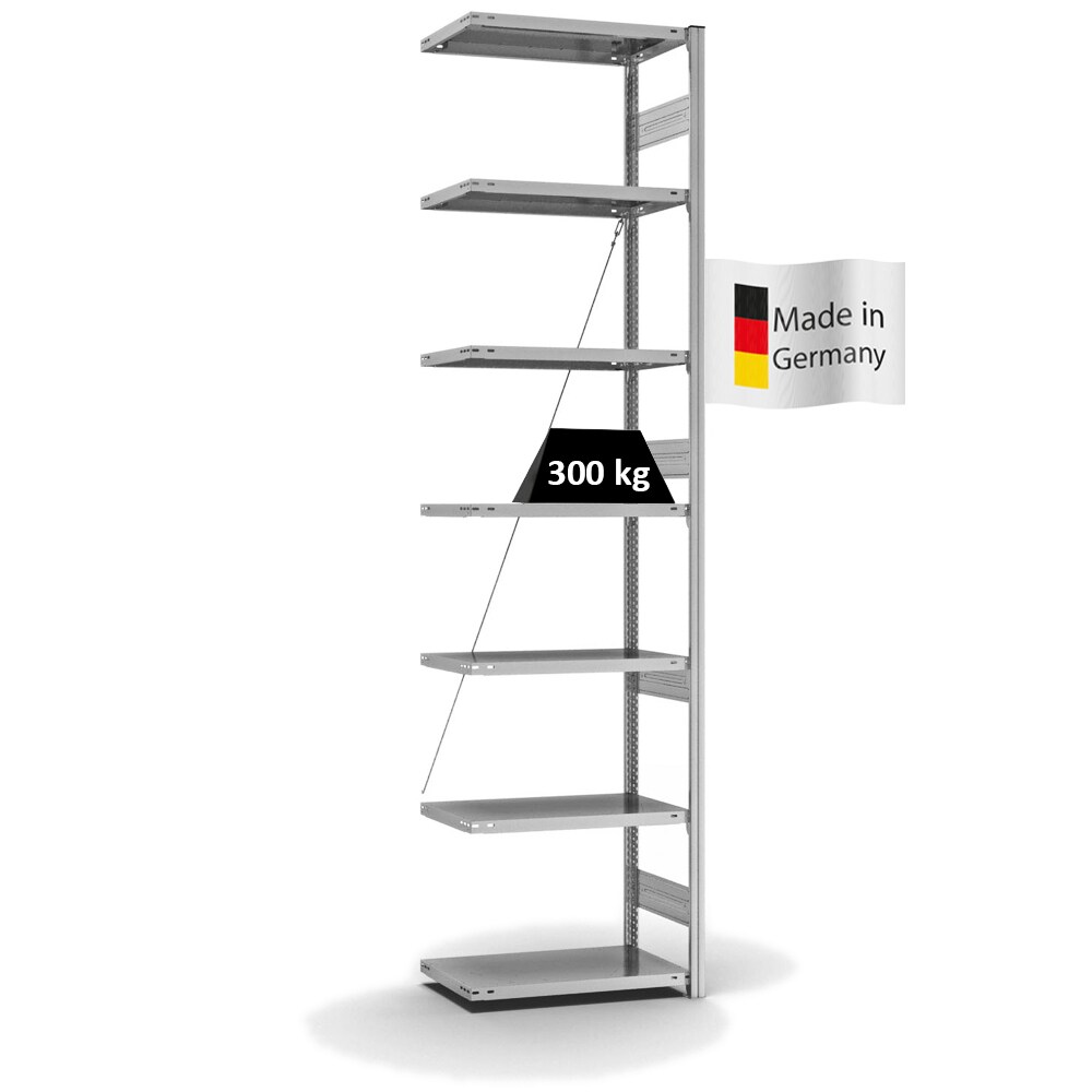 PROREGAL Fachbodenregal Stecksystem | Anbauregal | HxBxT 300x75x40cm | 7 Ebenen | Fachlast 300 kg | Einseitig nutzbar | Verzinkt