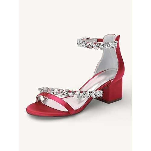sandali da donna con tacco a blocco in raso viola, eleganti scarpe da sera con punta aperta e cinturino alla caviglia con strass, perfette per matrimoni, balli di fine anno eventi formali di festa