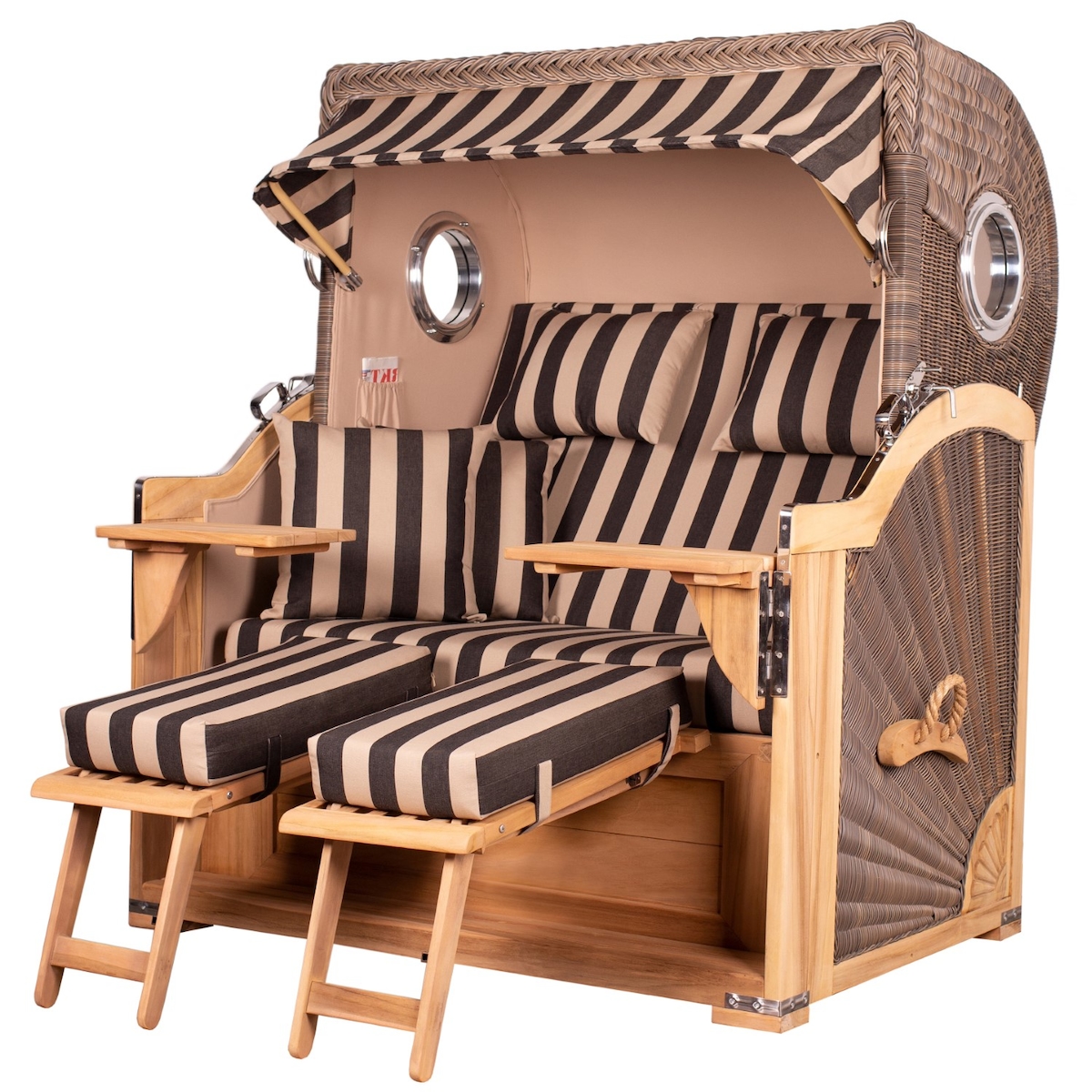 Mr. Deko Strandkorb Komplettset - bene living - Königssee Teak Bullauge - PE grau - Modell 581 - inkl. Liftersystem