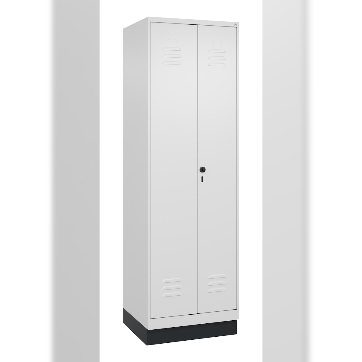 C+P Aufbewahrungs Doppel-Spind Classic PLUS, Sockel, 2 Abteile, 5 Fachböden, HxBxT 195x60x50cm, Sicherheitsdrehriegel, Verkehrsweiß von PROREGAL