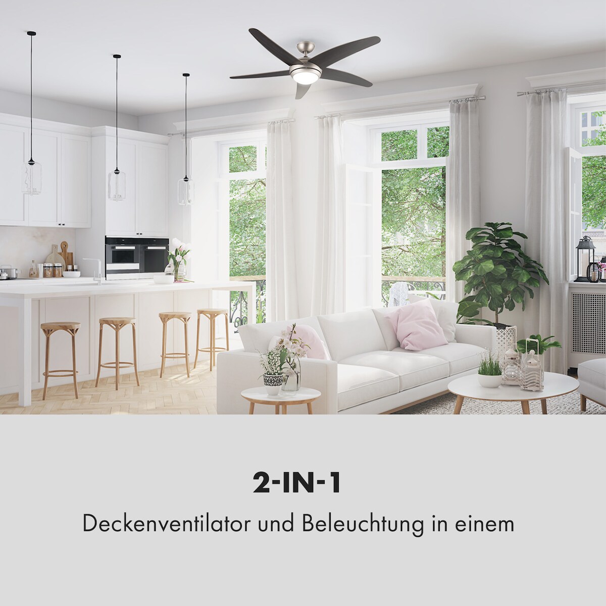 Klarstein Bolero 2-in-1-Deckenventilator Leuchte 55W 10212 m³/h Fernbedienung Walnuss 134