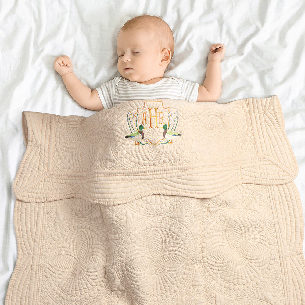 Personlig brodert søtt Sage Mallard Duck Monogram 100% bomull mykt baby quilteteppe med monogram Baby shower gave til nyfødte