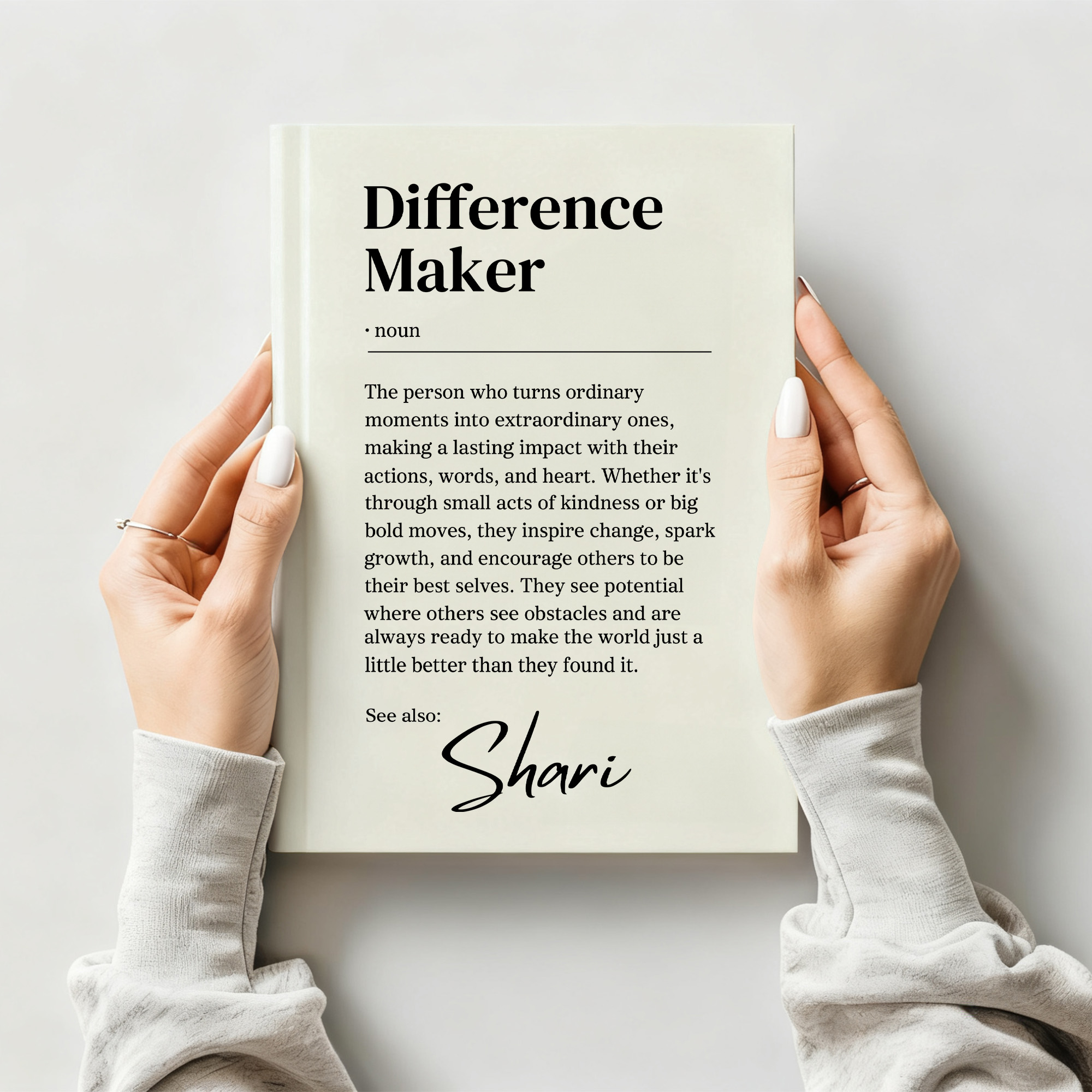 Personalisert Difference Maker Flerfarget dagbok med navn og 100 linjer med tekst Bursdagsgave til lærer Bursdag Julegave til lærer Sykepleier