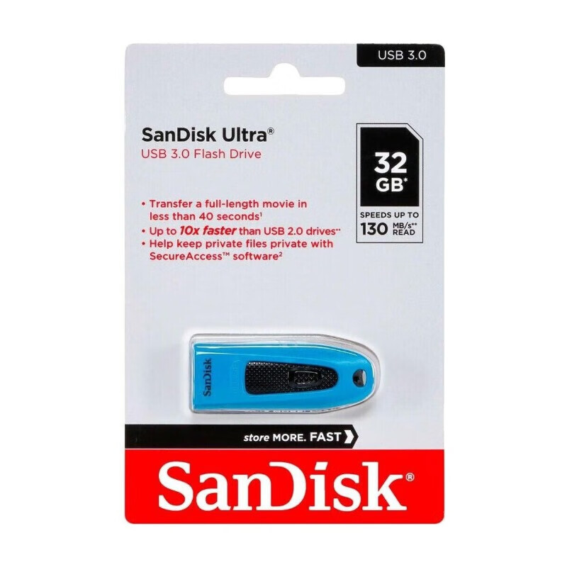 SanDisk Ultra USB 3.0 Flash-Laufwerk 32 GB (SecureAccess-Software, Passwortschutz, Übertragungsgeschwindigkeiten von bis zu 130 MB/s) Blau