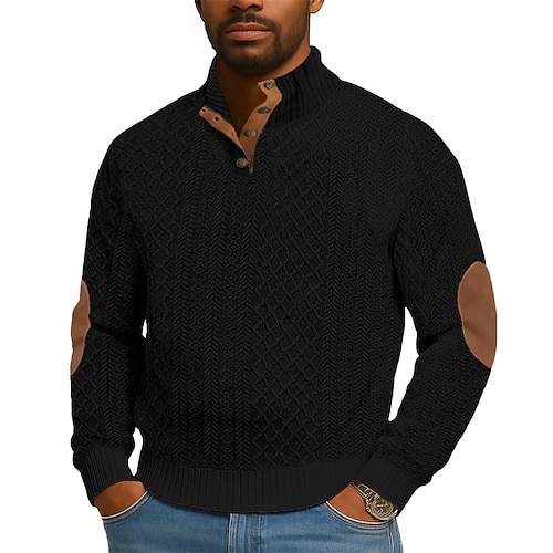 Per uomo Jacquard Maglia Maglione Felpa con cappuccio abbottonata Rosso bordeaux Nero Bianco Verde militare Blu marino Colletto Mao Semplice Patchwork Testurizzato Casuale Quotidiano Sport Outdoor