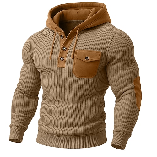 Per uomo Maglia Velluto a coste Felpa con cappuccio Maglione Felpa con cappuccio abbottonata Nero Bianco Beige Grigio Colletto Mao Semplice Patchwork Sport Outdoor Casuale Quotidiano Streetwear