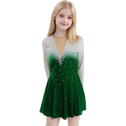 abito da pattinaggio artistico da bambina, maniche lunghe, elegante, fatto a mano, in cristallo, da competizione, da donna