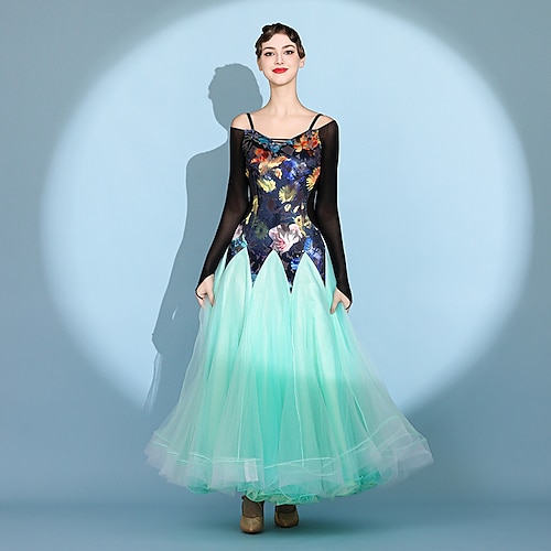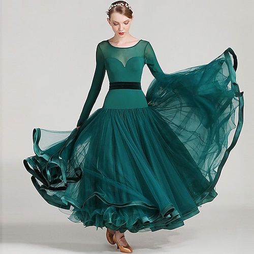 abito da ballo da sala per allenamento da donna, costumi da danza moderna, abiti standard da valzer a maniche lunghe