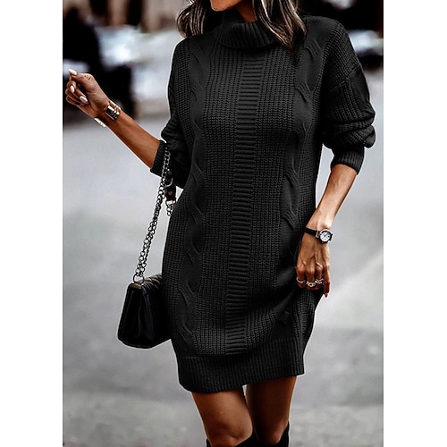 Per donna Abito al ginocchio Abito in maglia Abito a trapezio Casual Ferie Vestibilità regolare Semplice Manica Lunga Dolcevita Nero Rosa Blu Verde Autunno Inverno