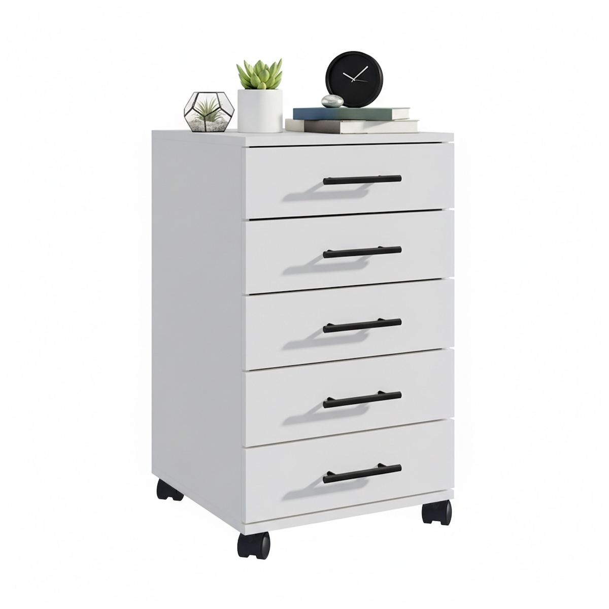 ML-Design Rollcontainer 2er Set 5 Schubladen 33x38x63,5 cm Weiß Holz Alu-Griffe Bürocontainer Rollschrank
