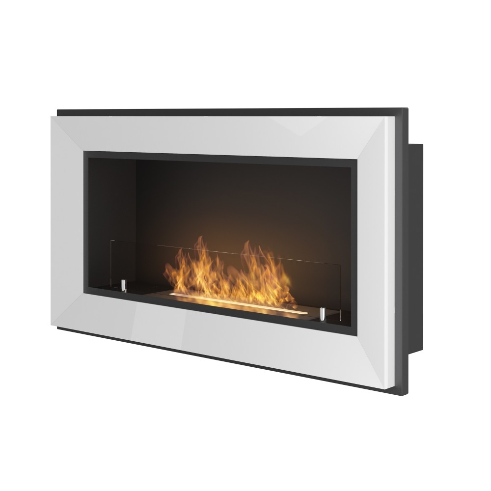 OutInFire RAME 900 – Eingebauter Biokamin, wandmontierter Bioethanolkamin – Weiß – mit Glas