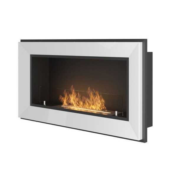 OutInFire RAME 180 - Eingebauter Biokamin Wandmontierter Bioethanolkamin - Weiß - mit Glas
