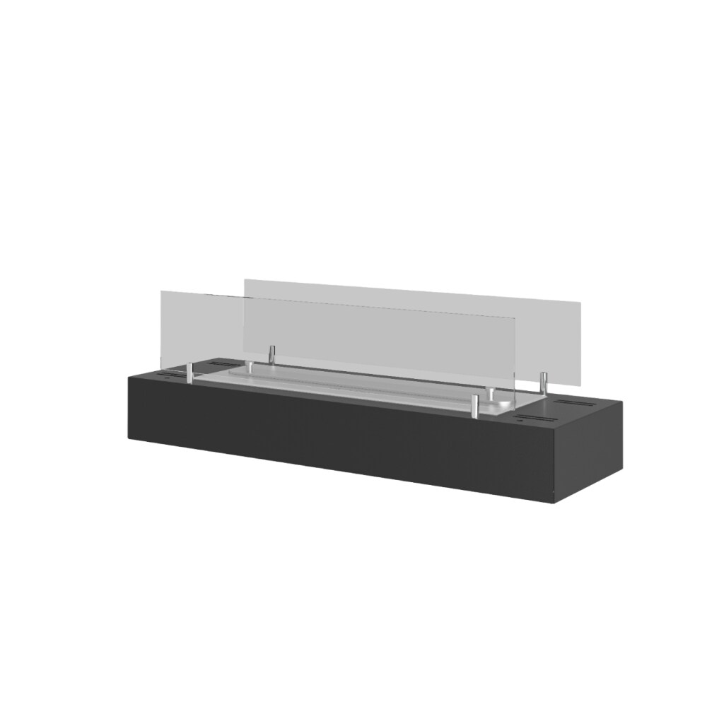 SOLOLED Bioethanolbrenner mit mattschwarzem Edelstahl-Arbeitsplatteneinsatz 120 cm mit Glas