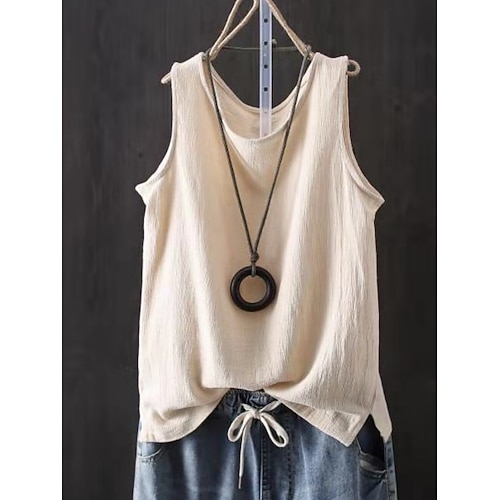 Per donna Blusa Tinta unica Vintage Elegante Essenziale Senza Maniche Girocollo Top Regolari Quotidiano Arricciato Bianco Giallo Rosa Marrone Beige Estate