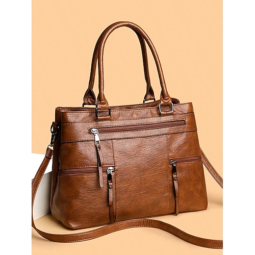 borsa a tracolla grande in similpelle da donna con tasche multiple, elegante borsa a mano per lavoro, viaggi e uso quotidiano