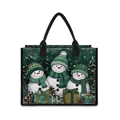 Borsa tote da donna con stampa di pupazzo di neve natalizio, borsa a tracolla in tela di grande capacità, borsa per lo shopping natalizio da donna
