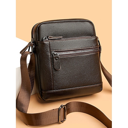 borsa a tracolla da uomo in vera pelle – borsa a tracolla nera e marrone con più tasche con cerniera, elegante e resistente per il lavoro e le uscite informali