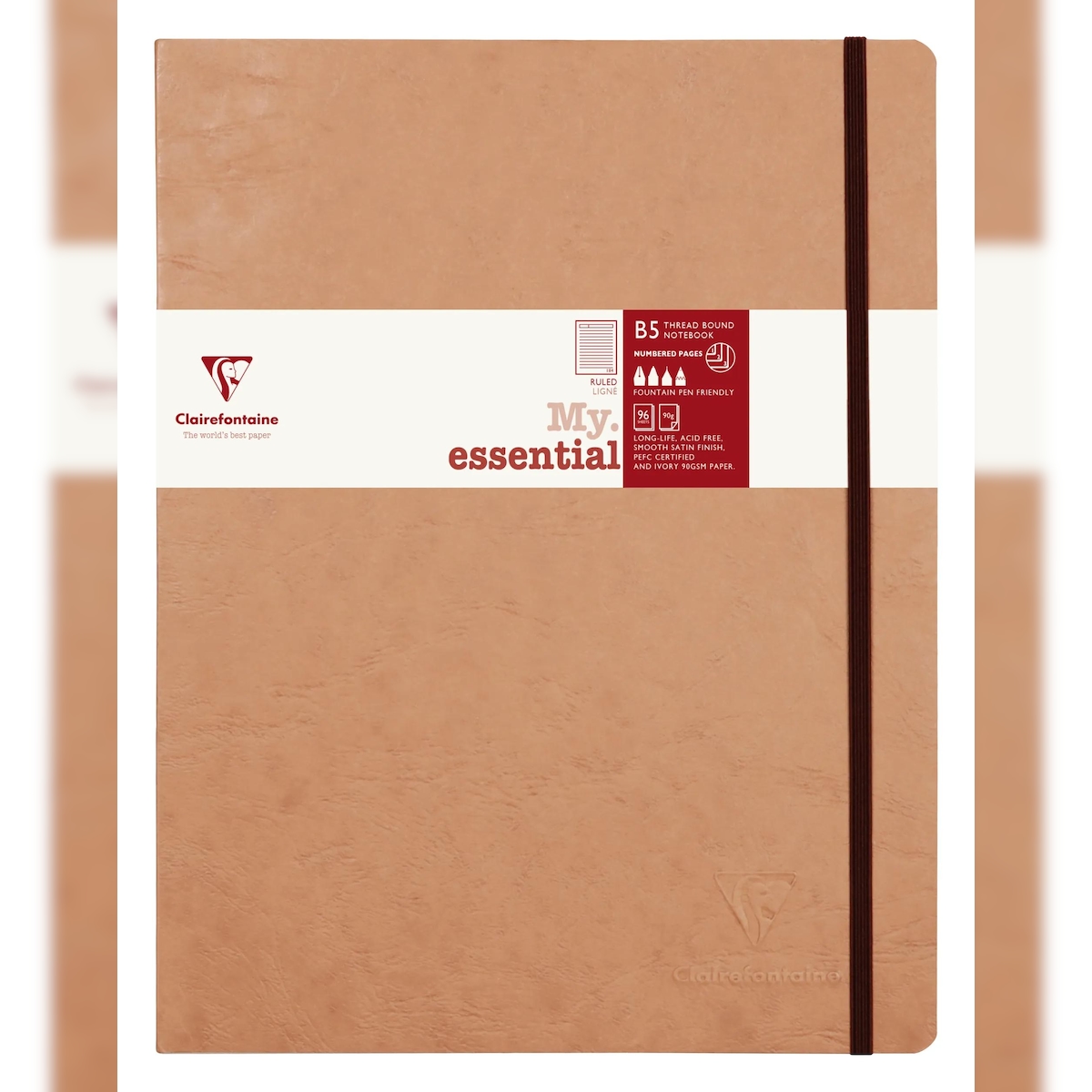 Clairefontaine 5x My.Essential Age Bag, Notizbuch B5 (19x25 cm) mit Fadenbindung, 96 Blatt nummeriert, liniert, Papier elfenbein 90g - Tabak 79446C