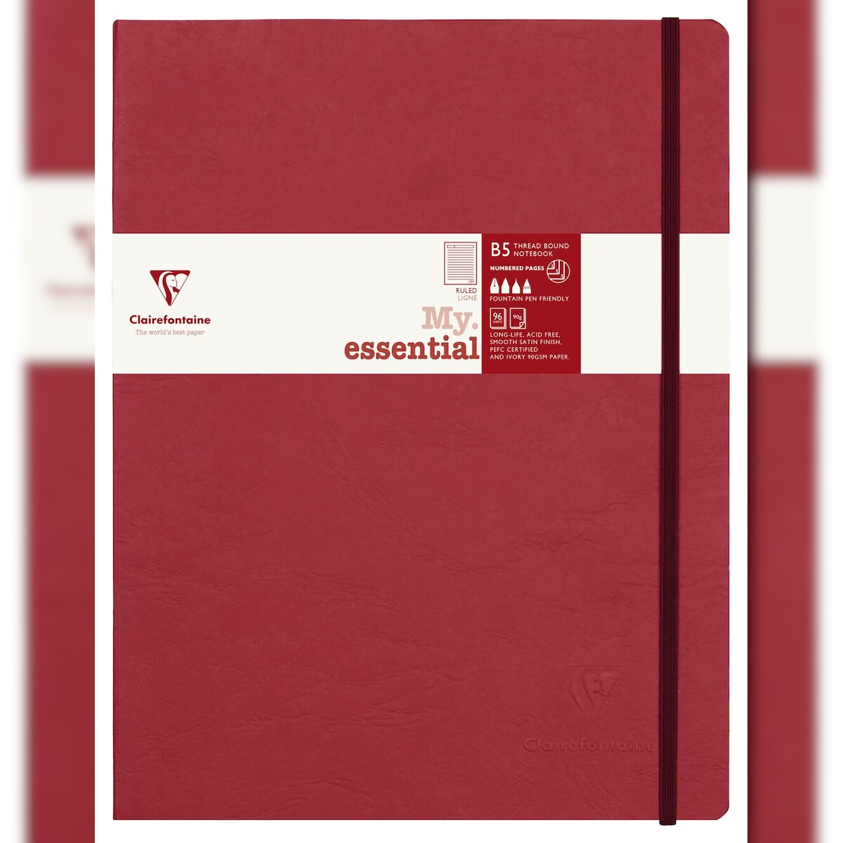 Clairefontaine 5x My.Essential Age Bag, Notizbuch B5 (19x25 cm) mit Fadenbindung, 96 Blatt nummeriert, liniert, Papier elfenbein 90g - Rot 794462C