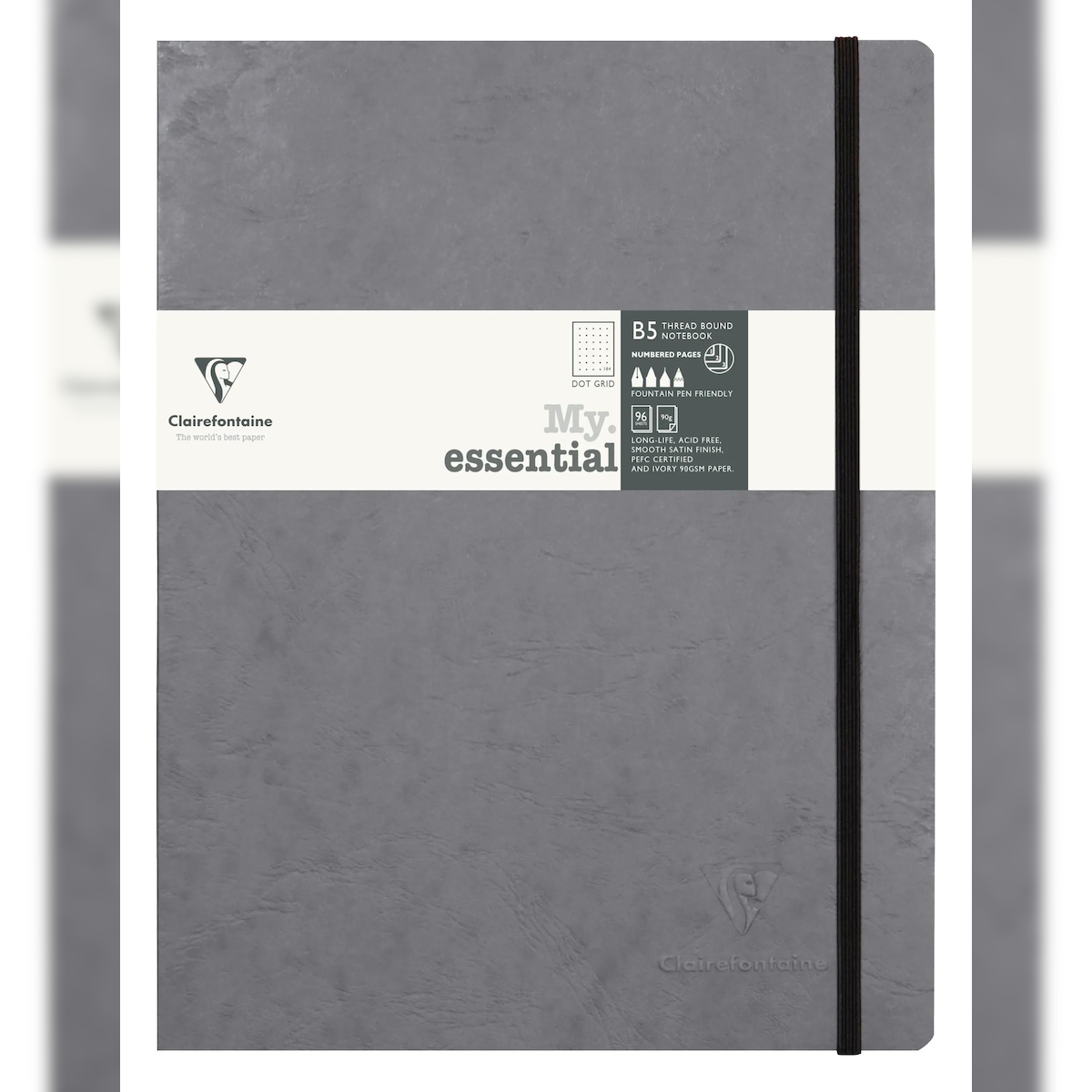Clairefontaine 5x My.Essential Age Bag, Notizbuch B5 (19x25 cm) mit Fadenbindung, 96 Bl nummeriert, dot, Papier elfenbein 90g - Grau 794435C