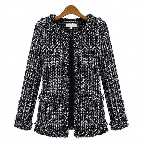 Per donna Cappotto Esterno Strada Da tutti i giorni Autunno Inverno Standard Cappotto Standard Tenere al caldo Traspirante Moda Informale Giacca Manica lunga Liscio Righe e Plaid Con tasche Nero
