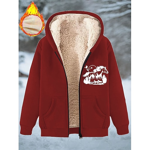 Per donna Cappotto Invernale Caldo Cerniera Tasca Stampato Moda Casual Animale Streetwear Casuale Regolare Con Cappuccio Vestibilità regolare Manica Lunga Capispalla Blu Nero Rosso Primavera Autunno