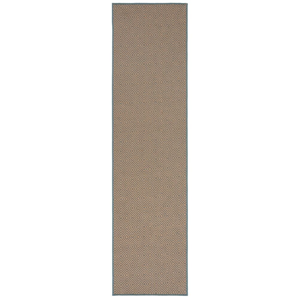 Geometrischer Jute-Teppich mit Naturkautschuk, rutschfester Rücken, hochdichter Teppich - `Carron`. Farbe: Braun-Blau, 60x600 cm | Kadima Design