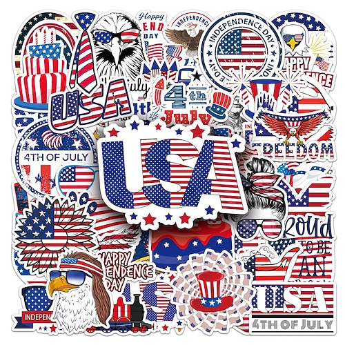 200 adesivi per il 4 luglio, 4 confezioni da 50 adesivi patriottici in vinile impermeabili per bottiglie d'acqua e computer portatili, adesivi con la bandiera degli Stati Uniti per il giorno