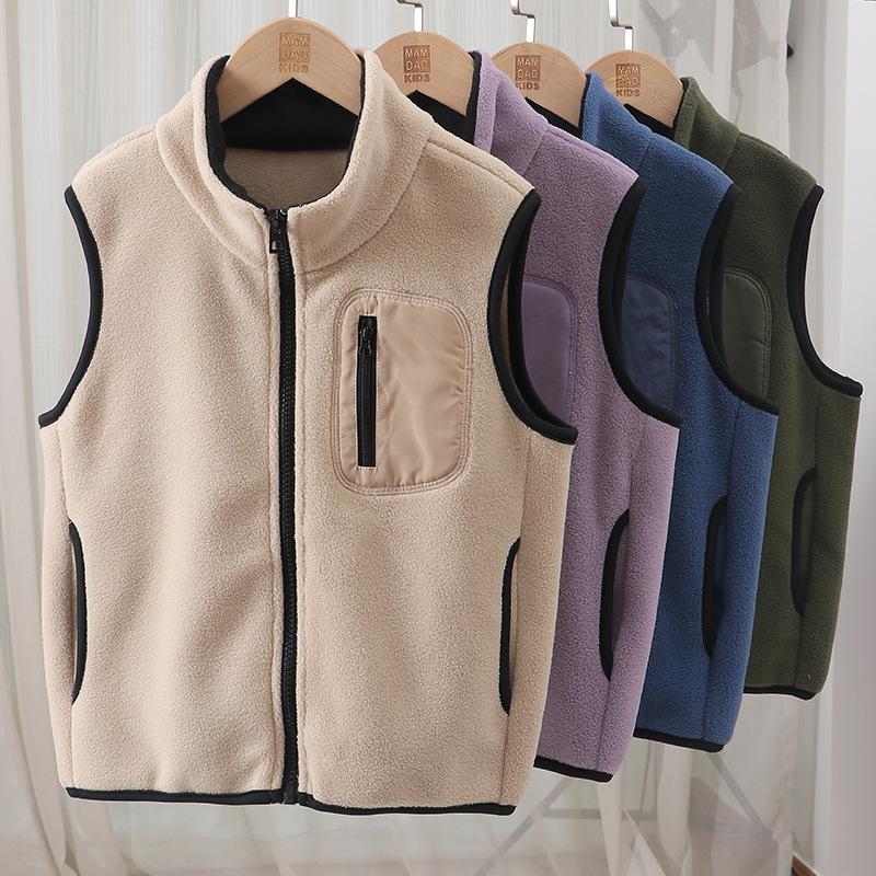 4-18 år Gutter Jenter Polarfleece Vest Høst Vinter Tykk Varm Tenåring Barn Topper Overbekledning 5A Barnevester 140cm khaki