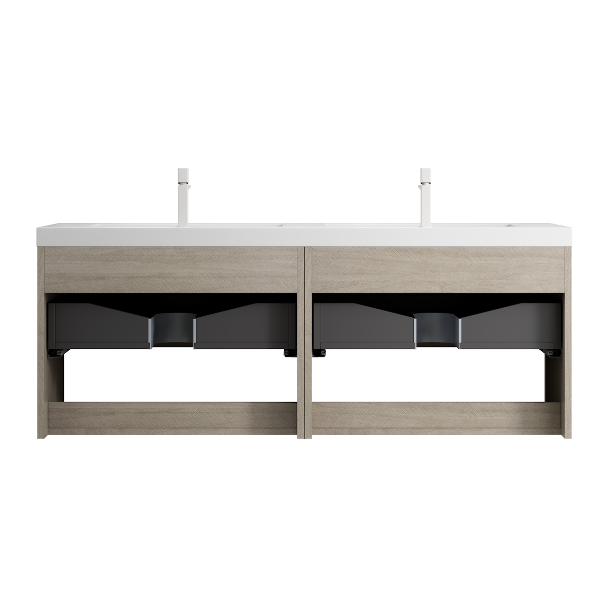 MODFU Waschtisch 53×140×46 cm mit 2 Waschbecken aus Resin, Eiche Hell Holzmaserung, 2 Schubladen, vorinstalliert