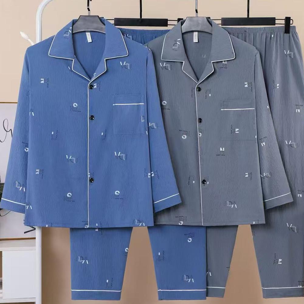 Heren Plus Size 5XL Wolkenkatoen Vest Pyjama - Lichtgewicht Lange Mouw Homewear voor Lente, Zomer en Herfst cm