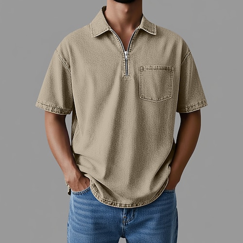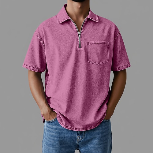 Da uomo Polo con zip Maglietta di cotone Manica Corta Zip a un quarto Estate Primavera Primavera Estate Semplice Moda Essenziale Moderno Cerniera Tasca Abbigliamento quotidiano Data Weekend Nero
