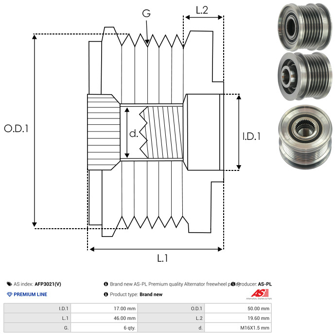 AS-PL Generatorfreilauf AFP0101(LITENS) für MERCEDES-BENZ NISSAN A2741550315 2741550215 2741550315