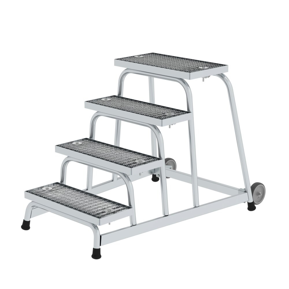 PROREGAL Arbeitspodest starr mit Rollen | 4 Stufen | Stahl-Gitterrost | Rutschfeste Kunststoffschuhe