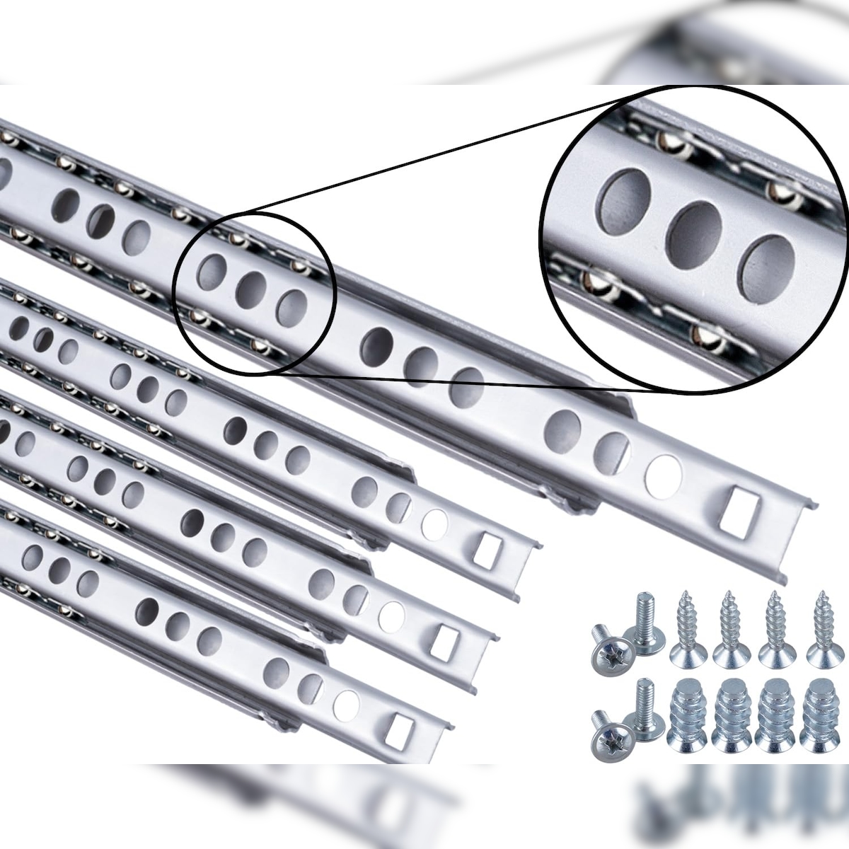 ID Dinkel Schubladenschienen 4 STÜCK 2 Paar Nuthöhe 17mm Länge 438mm Teilauszug Rollenauszug Kugelführung